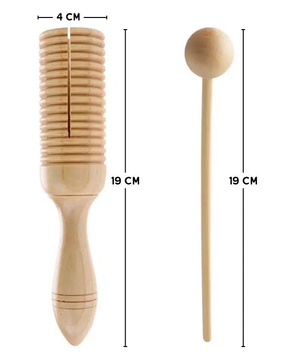 19 cm uzunluğundaki ahşap gövdesi elde rahat tutulur ve dengeli bir kullanım sunar. Kompakt yapısı sayesinde hem eğitim ortamlarında hem de günlük müzik çalışmalarında pratik bir kullanım sağlar. Doğal ahşap görünümü ve elde kolay kavranan formu ile ritim uygulamalarında rahat bir kullanım sunar.
