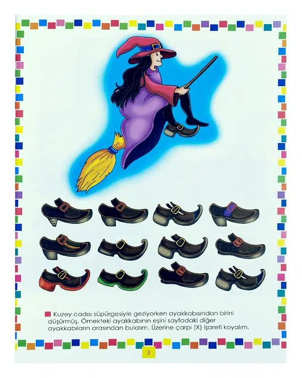 Çocuk gelişiminde düşünme becerilerinin önemi çok yüksektir. Bundan dolayısıyla hazırlanmış olan kitabımızda çocuğumuzun dikkat gelişimin arttırmak için görsel hafıza etkinliklerinin de bulunduğu bir faaliyet kitabıdır.