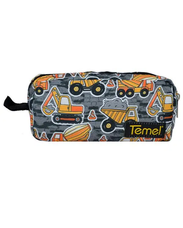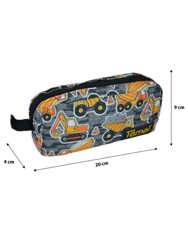 Temel İş Makinalı Desenli Gri Tek Gözlü Kalem Çantası