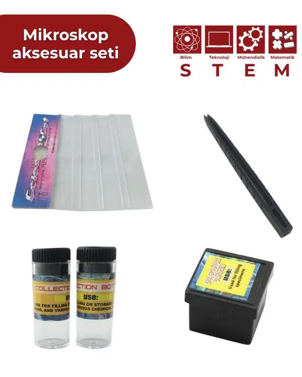 Ürün; okul çalışmaları, evde bilim etkinlikleri, temel deneyler ve STEM odaklı keşif aktiviteleri için uygundur. Yardımcı aksesuarları ile birlikte gelen bu model, çocukların merak, gözlem ve öğrenme becerilerini destekleyen kullanışlı bir eğitim seti sunar. Kompakt masaüstü tasarımı sayesinde hem evde hem sınıf ortamında rahat kullanım sağlar.