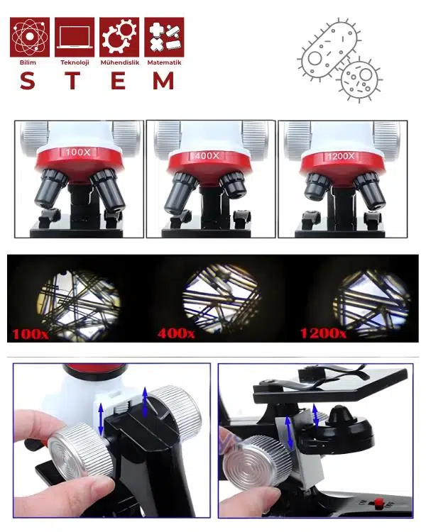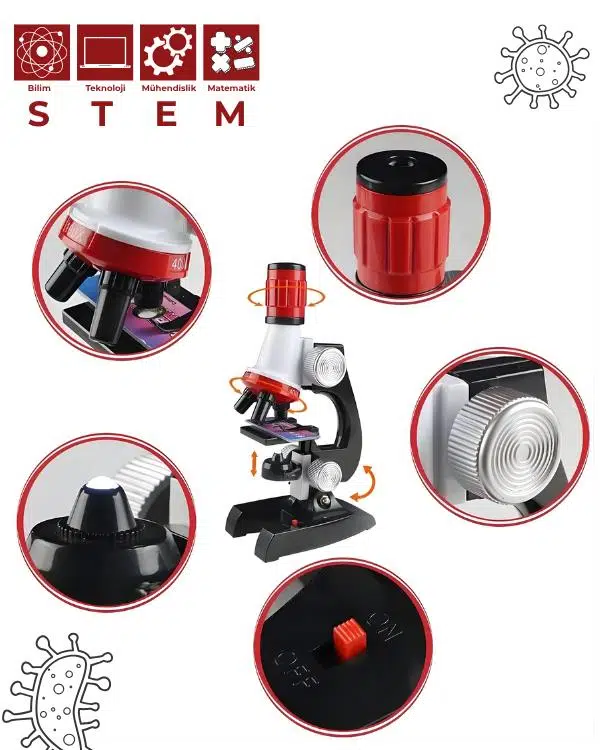 EtiketlerTemel Işıklı Bilimsel Çocuk Mikroskobu 100x 400x 1200x, STEM Eğitim ve Deney Seti