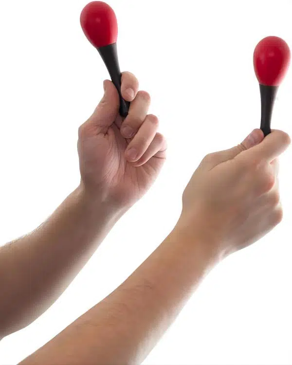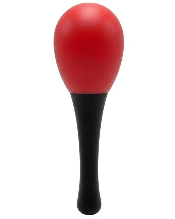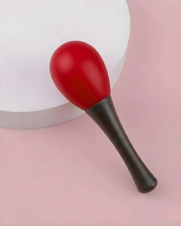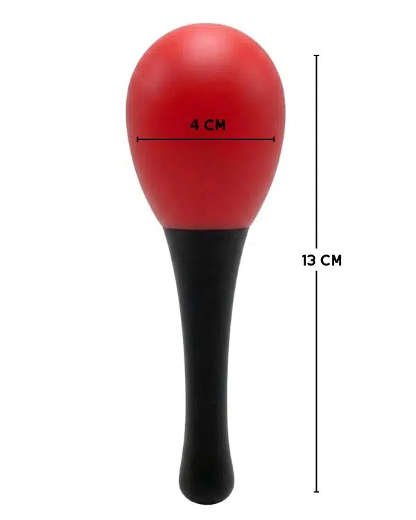 13 cm uzunluğa ve yaklaşık 4 cm baş çapına sahip ergonomik yapısı sayesinde elde rahat tutulur ve dengeli bir kullanım sunar. Ürünün üst kısmı kırmızı marakas formunda olup, sap kısmı siyah renktedir. Bu kontrast tasarım hem dikkat çekici hem de kullanışlı bir görünüm sağlar.