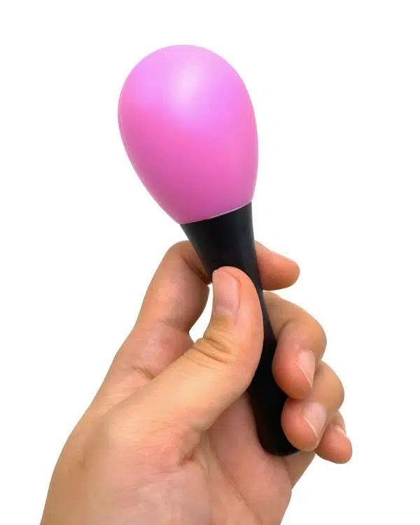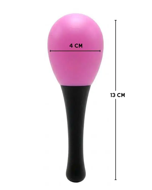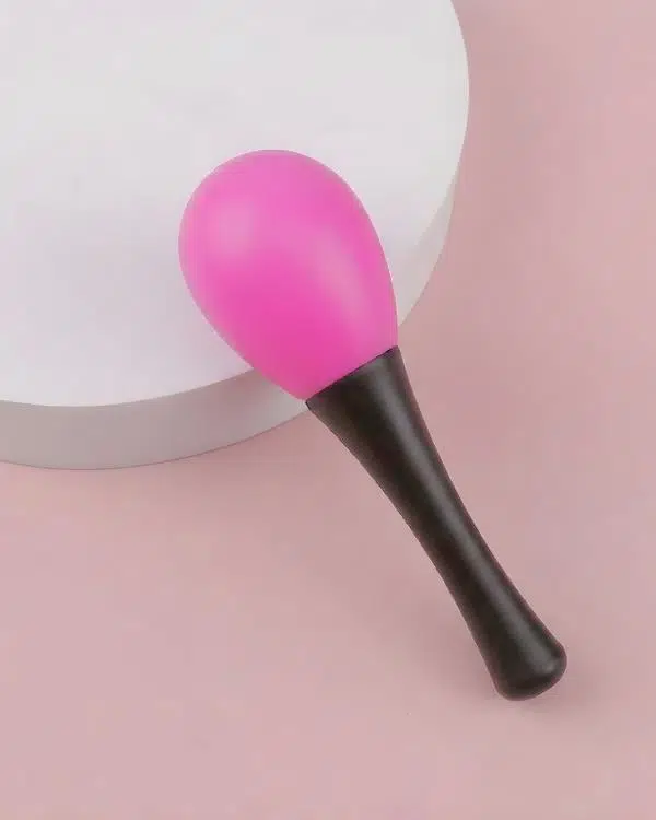 13 cm uzunluğa ve yaklaşık 4 cm baş çapına sahip ergonomik yapısı sayesinde elde rahat tutulur ve dengeli bir kullanım sunar. Ürünün üst kısmı pembe marakas formunda olup, sap kısmı siyah renktedir. Bu kontrast tasarım hem dikkat çekici hem de kullanışlı bir görünüm sağlar.