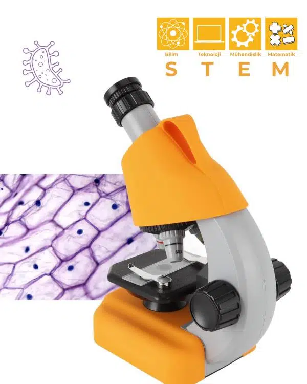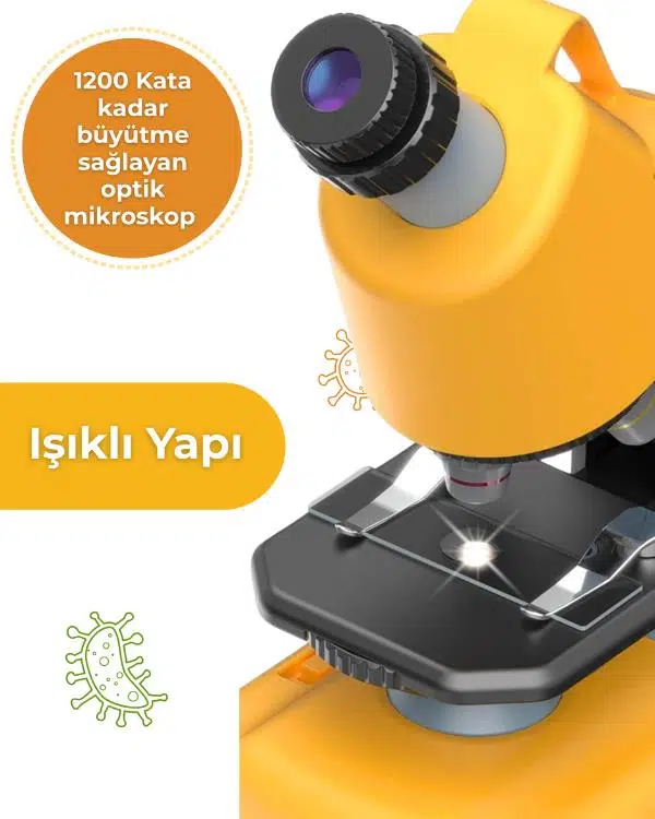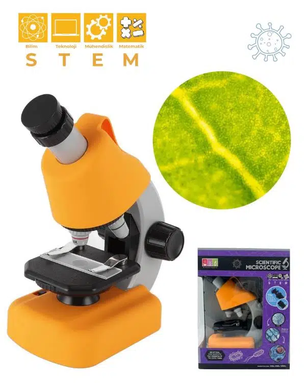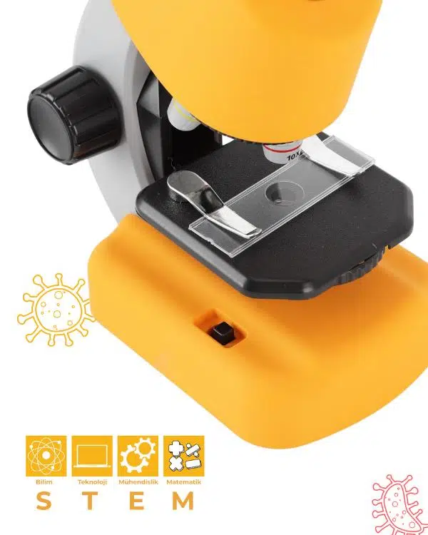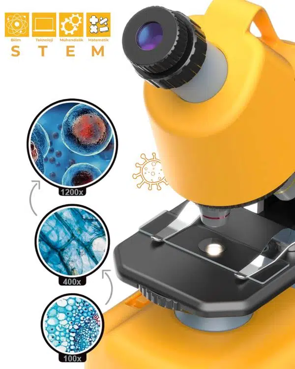 EtiketlerTemel Sarı STEM Mikroskop Seti 100x 400x 1200x Plastik Gövdeli Bilim Kiti