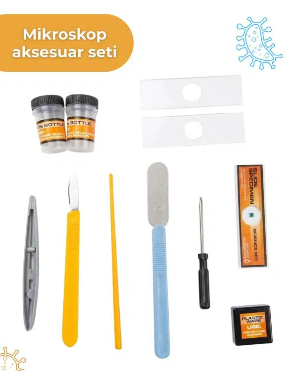 Set; boş cam lamlar, lamel kapakları, numune kapları ve damlalık gibi temel aksesuarlar içerir. Rack‑pinion odak mekanizması ve aynalı ışık yansıtma sistemi net ve parlak görüntüler sunar. 8 yaş ve üzeri kullanıcılar için uygun olan bu kit, bilimsel merak ve gözlem becerilerini desteklemek üzere tasarlanmıştır.