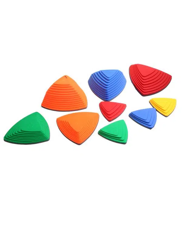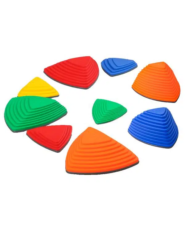 Irmak taşları çocuklarınızın meydan okuma duygusunu ve hayal gücünü destekleyen eğlenceli bir oyundur. Çocukların yeteneklerine ve tercihlerine göre çeşitli yollar ve engeller oluşturarak, duyusal ve motor becerilerinin gelişimini destekleyebilirsiniz. Tüm bunların yanı sıra çocukların uzaklık ve yakınlık becerilerinin gelişimini destekler. Oyun sırasında herhangi bir kayma olmaması ve yerleştirilen zemine zarar vermemesi için ürünlerin alt kısmı kauçuk ile desteklenmiştir. Irmak taşları; anaokulu, kreş, özel eğitim merkezleri için ideal bir oyundur.