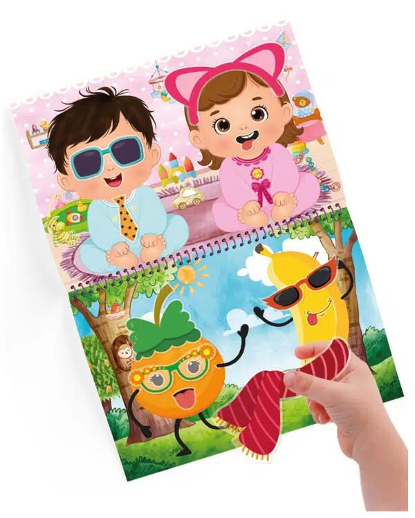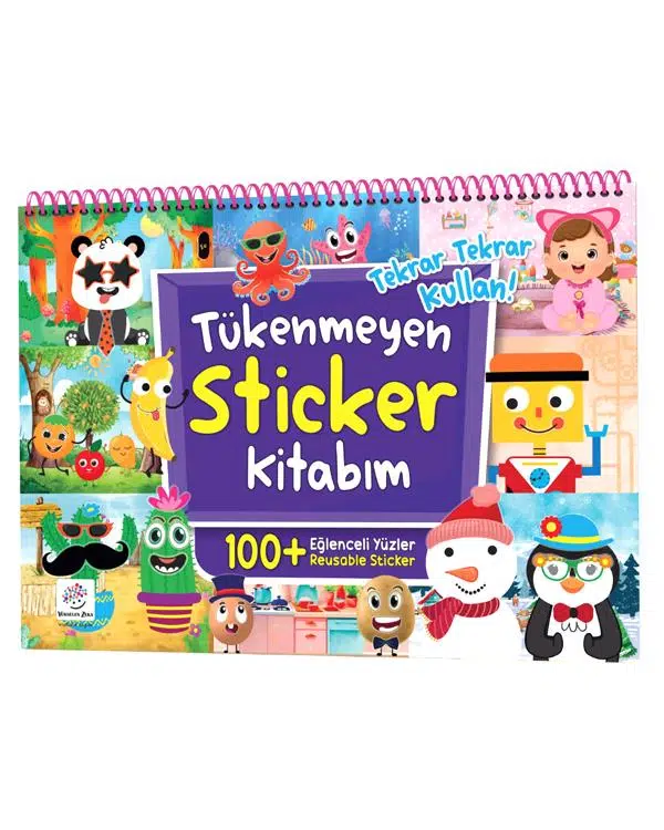Çocuklar sticker’ları karıştırarak farklı temalara yapıştırıp eğlenebilir. 4 farklı sayfadaki 100’den fazla tekrar kullanılabilen sticker ile çocuğunuz eğlenceli sahneler oluşturabilecek. Çocuklar sticker’ları tekrar tekrar kullanabilir, yapıştırdığı yerden çıkarıp geri yapıştırabilir.