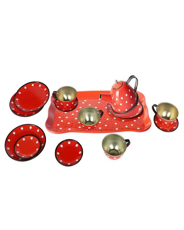 Set; çaydanlık, büyük tepsi, küçük ve büyük tabaklar ile fincanlardan oluşur. Minik eller için özel olarak tasarlanan bu parçalar, çocukların kendi çay partilerini düzenleyip misafir ağırlama oyunları oynamalarına olanak tanır.