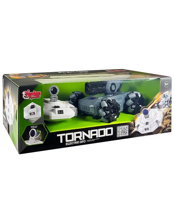 Hem tankta hem de UFO’da 3.7V USB’den şarj edilebilen piller bulunur. Kutudan çıkan iki adet USB şarj kablosu ile kolayca şarj edilir. Kumanda 2 adet 1.5V AA pil ile çalışır (piller kutuya dahil değildir).