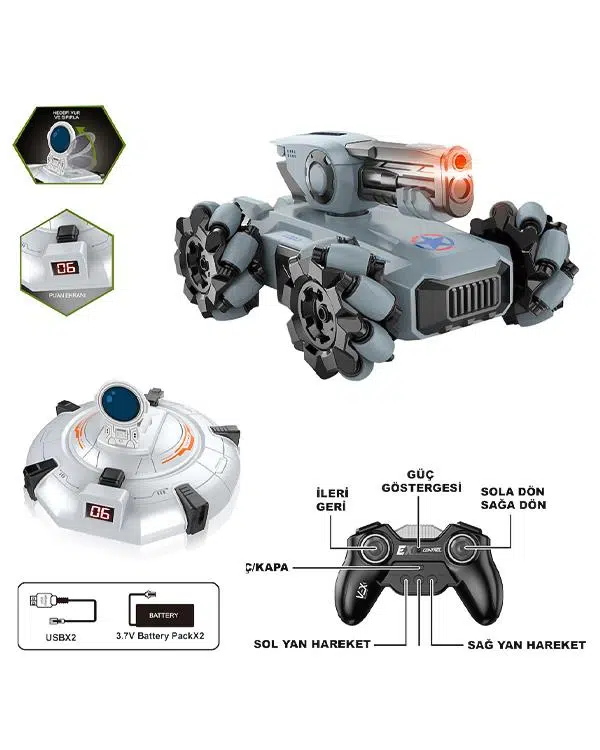 Vardem Uzaktan Kumandalı Full Fonksiyon Şarjlı 2.4GHz Ufo Avcısı Akrobatik Tank Gri 666804