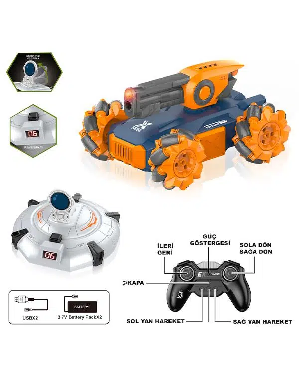 Vardem Uzaktan Kumandalı Full Fonksiyon Şarjlı 2.4GHz Ufo Avcısı Akrobatik Tank Turuncu 666804