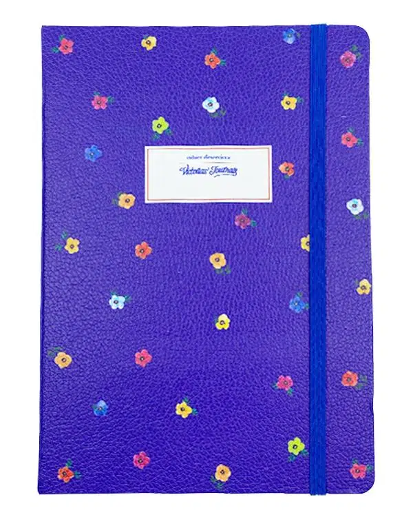 Victorias Sert Kapaklı Noktalı Bloknot Çiçekli Lacivert No:6
