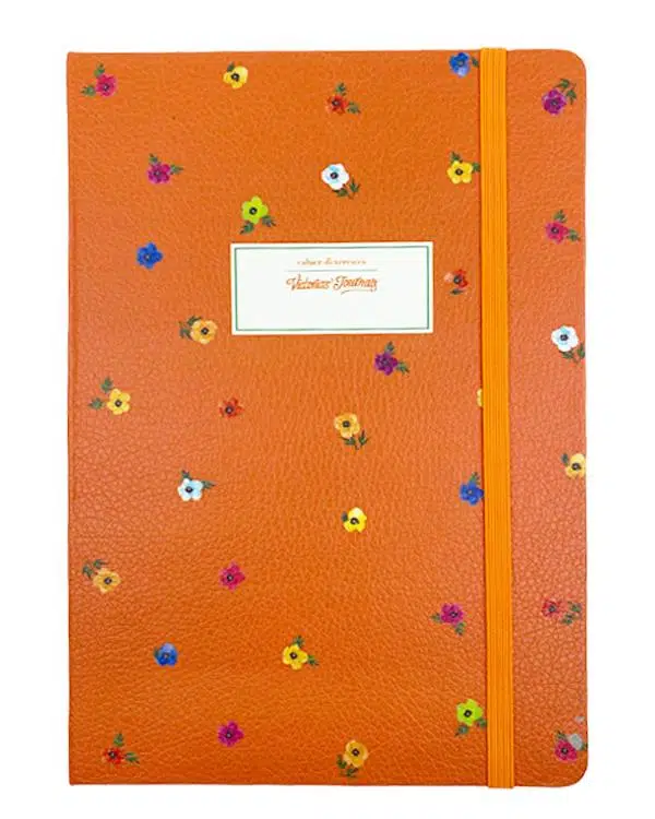 Victorias Sert Kapaklı Noktalı Bloknot Çiçekli Turuncu No:3