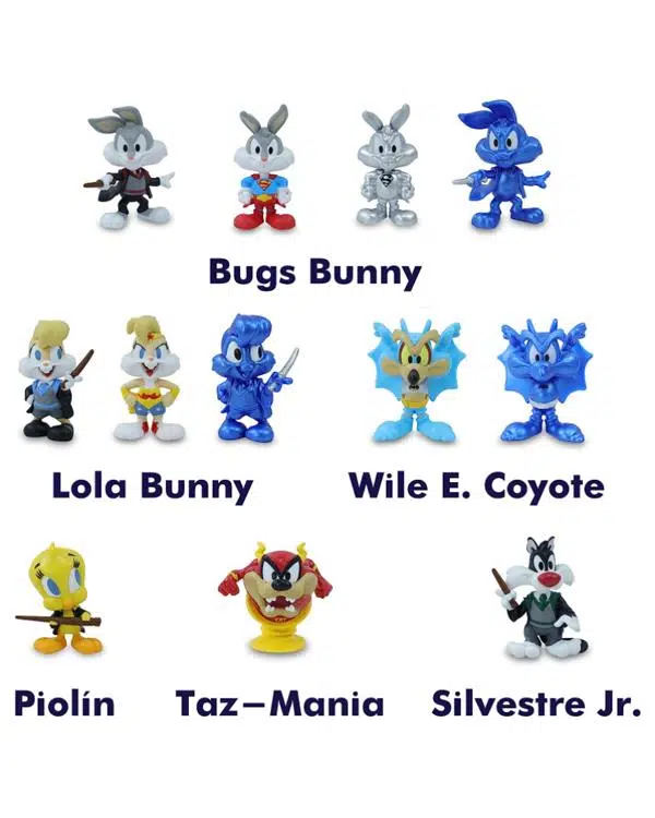 5 yaş ve üzeri çocukların kullanımım için uygundur. Sürpriz kapsüller içinde gelen 6 cm uzunluğundaki figürler Wonder Woman kostümlü Lola Bunny, Hogwarts kostümlü Lola Bunny, Sylvester, Tweety, Bugs Bunny, Superman kostümlü Bugs Bunny ve Wile E. Coyote, Flash kostümlü Tazmanya Canavarı olmak üzere 8 asortiden oluşuyor.
