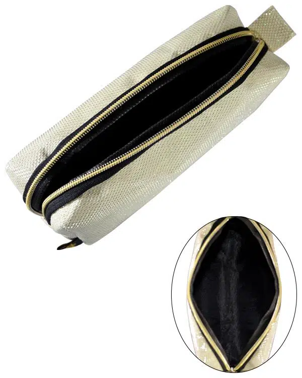 Mükemmel kullanım kolaylığı ile geniş ana bölmeye sahip bu makyaj çantası şık bir görüntüye sahiptir. Ayrıca; gümüş kaliteli fermuar, lamine polyester astara sahip bu çanta 0,95 litre kapasite ile geniş bir alan sunmaktadır.