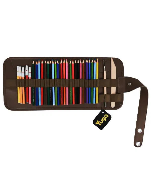Yuga Suni Deri 36 Gözlü Rulo Kalemlik Kahverengi