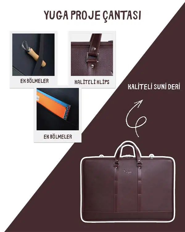 Yuga Suni Deri Lüks Proje ve Resim Çantası ile projelerinize şıklık ve fonksiyonelliği bir arada katın! Modern tasarımı ve üstün kaliteli malzemeleriyle dikkat çeken bu proje çantası, tarzınızı yansıtırken pratik kullanım imkânı sunar.