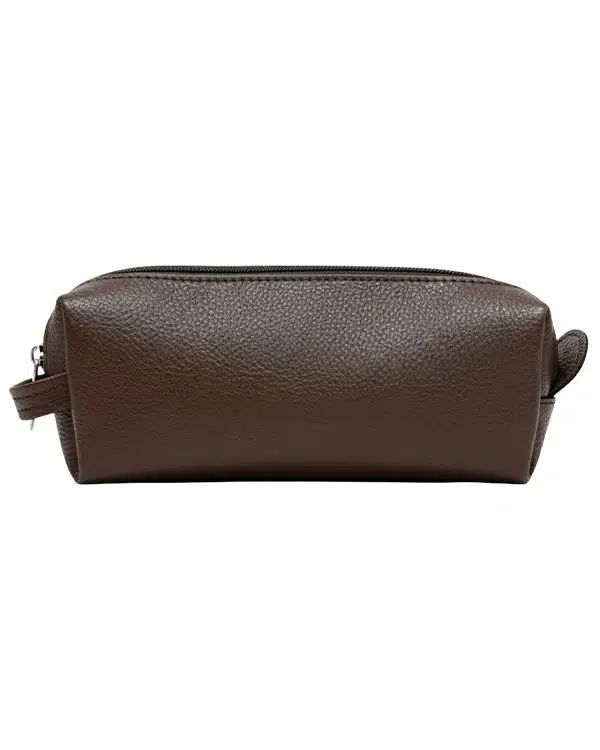 Tek gözlü kahverengi kalem çantası, birçok alanda rahatça kullanım için tasarlanmış, pratik ve şık bir aksesuardır. Tek bir ana bölmesi sayesinde küçük boyutlu malzemelerin dağınıklığını engelleyerek, düzenli bir şekilde saklamaya yarar. Suya dayanıklı suni deri kumaştan üretilmiştir.