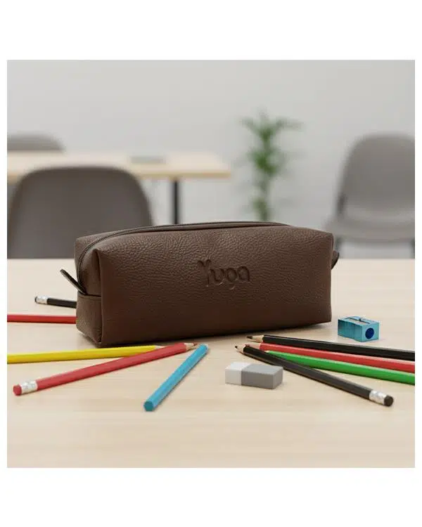 Yuga Tek Gözlü Suni Deri Kalem Çantası Kahverengi