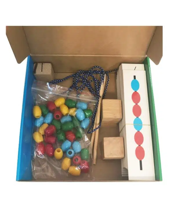 Oyunun amacı, çocuğun boncukları rengine göre dizmesidir.