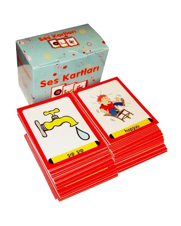 Ses kartları seti, yansıma ve ünlem seslerini dile getiren görsellerden oluşmaktadır. Amacımız çocuğun Türkçedeki fonemleri fark etmesi, tanıması ve ayırt etmesidir. Söz konusu seslerin taklidi ile işitsel algıda seslerin fark edilmesi ve algılanmasını sağlamak, konuşma esnasında seslerin doğru üretilmesini için önem arz eder.