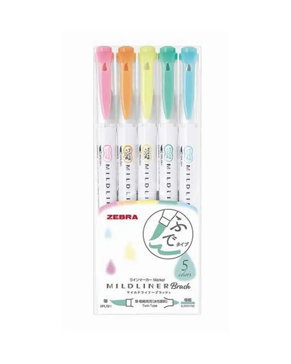 Zebra Mildliner Fırça Uçlu Fosforlu Kalem 5li WFT8-5C