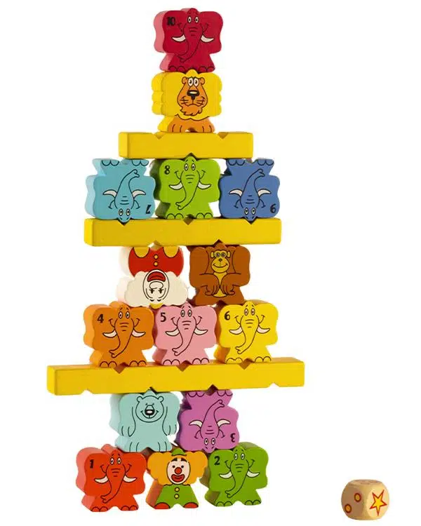 İçindekiler: 10 fil, 5 joker (2 palyaço, 1 goril, 1 aslan, 1 ayı, 3 denge çubuğu, 1 zar)