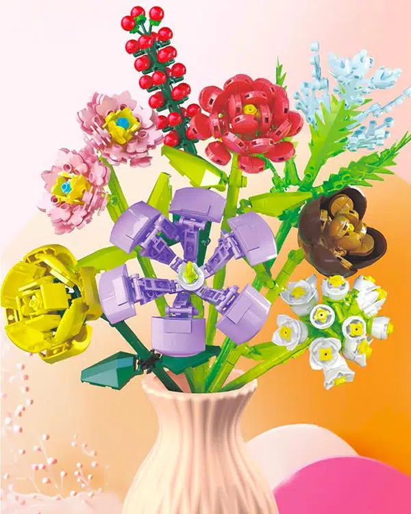 Her bir çiçek modeli, doğadaki gerçek çiçeklerden ilham alınarak tasarlanmıştır. Renkli yapraklar, dallar ve vazo bir araya geldiğinde hem eğlenceli bir oyun hem de dekoratif bir görünüm oluşturur. Parçalar kolayca takılıp çıkarılabildiği için çocuklar da bu sekiz çiçeği farklı şekillerde düzenleyerek her seferinde yeni bir buket görünümü oluşturabilir.